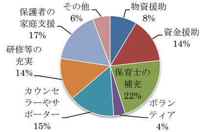 一方、同アンケート結果では、「資金援助」や「研修等の充実」も14%と、高位を占めており、これらについては、被災地保育士の支援のための募金送金と、それを被災地県保育組織においてその判断により多様に活用いただくなかで対応を図ってきたところ。